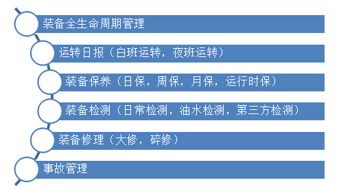 1、設(shè)備運(yùn)維管理;2、設(shè)備資料管理;3、庫(kù)存管理;4、人員權(quán)限管理;